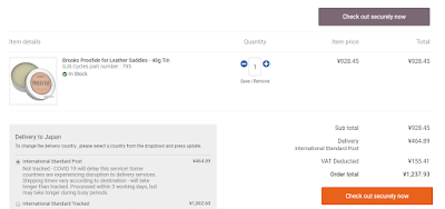何故か、Amazonでは在庫切れ。英国の通販サイトを調べてみると、追跡は出来ないが送料込みで、¥1,237.93と安い。 小数点2桁の0.93円はどうなるかな?