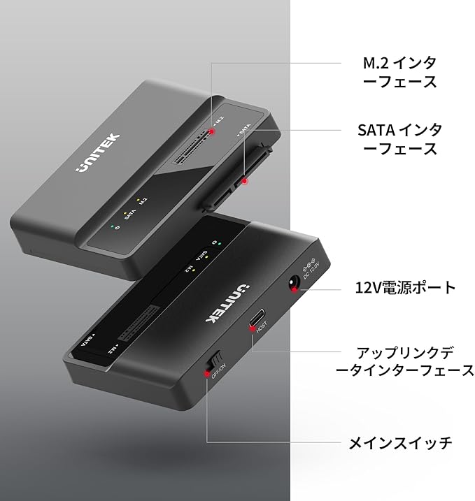 https://amzn.to/4bMB62D → USB to SATA HDD/SSD+ M.2 NVMe SSD 変換アダプタ